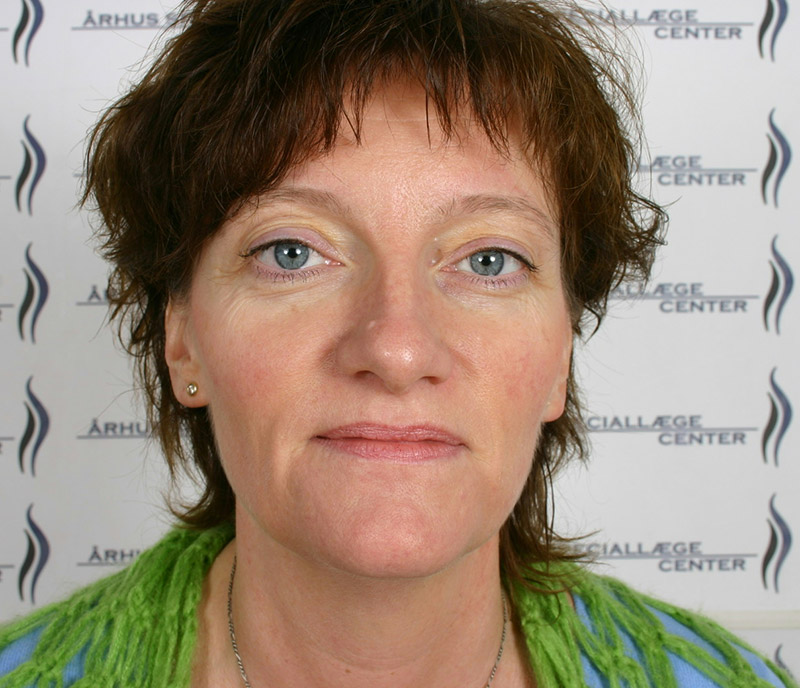 Patient med ønske om nedre ansigts-halsløft. Også mellemansigtet er sunket, men ikke i så høj grad og det har ikke patientens fokus.